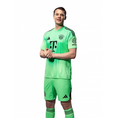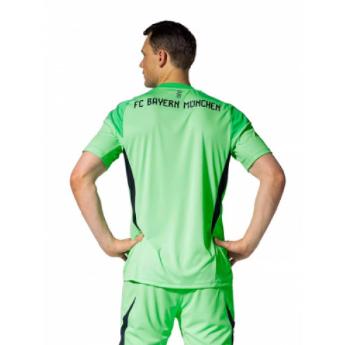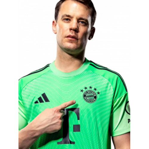 Зеленая вратарская футболка «Баварии» (FC Bayern Munich) на сезон 2025/2026 — это официальная игровая экипировка, выполненная в обновленной цветовой гамме и с использованием современных спортивных технологий. Дизайн включает сочетание двух оттенков зеленого с контрастными черными элементами (логотипы и детали). Технология AEROREADY: Материал эффективно впитывает влагу и быстро сохнет, обеспечивая комфорт вратарю на протяжении всего матча. Материал: Изготовлена из 100% переработанного полиэстера, что соответствует экологическим стандартам бренда. Ткань обладает высокой эластичностью для свободы движений при прыжках и сейвах
