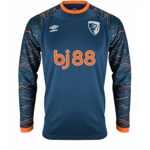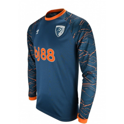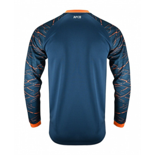 Борнмут футболка вратарская третья 2025/26 Третья вратарская футболка «Борнмут» сезона 2025/26 выполнена в насыщенном тёмно-синем цвете с яркими оранжевыми акцентами. Контрастные детали на воротнике, манжетах и динамичный узор на рукавах придают экипировке современный и дерзкий вид. Футболка с длинным рукавом создана из высокотехнологичной ткани, которая эффективно отводит влагу и обеспечивает максимальный комфорт на протяжении всего матча. Эргономичный крой гарантирует свободу движений, а клубный герб и логотип Umbro подчёркивают принадлежность к «вишням». Стильный и функциональный вариант для вратаря, который всегда должен быть заметен на поле.