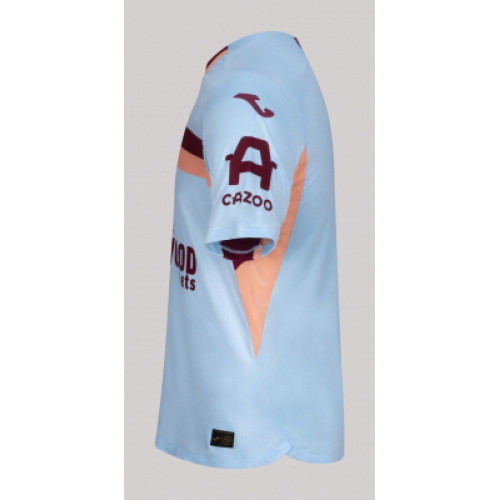 Брентфорд футболка резервная 2025/26 Резервная футболка «Брентфорда» сезона 2025/26 выделяется свежим небесно-голубым цветом, который разбавлен горизонтальной полосой в бордово-оранжевых тонах. Такое сочетание придаёт форме современный и динамичный вид, сохраняя при этом связь с фирменной айдентикой клуба. Технологичный материал обеспечивает оптимальную вентиляцию и комфорт даже при активных нагрузках. Благодаря лёгкости ткани футболка не сковывает движений, что делает её удобной как для игры, так и для повседневного ношения. На груди расположены клубный герб, логотип Joma и спонсорская надпись, подчёркивающие подлинность экипировки и её прямую принадлежность к Английской Премьер-лиге. На спине под воротником нанесён год основания клуба — 1889, как знак уважения к истории «пчёл». Этот вариант формы прекрасно подходит тем болельщикам, которые ценят стиль и стремятся выделиться, поддерживая команду в каждом матче.