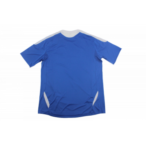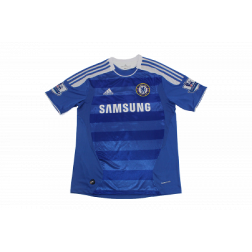 Домашняя футболка «Челси» сезона 2011/2012 является одной из самых знаковых в истории клуба, так как именно в ней команда впервые выиграла Лигу чемпионов. Дизайн и визуальные особенности Цвет и узор: Основной цвет — классический насыщенный синий. Главной особенностью является горизонтальный полосатый принт на передней панели, вдохновленный формой начала 80-х годов. Детали: Впервые на форме «Челси» три фирменные полоски Adidas на плечах были выполнены в синем цвете на фоне белых вставок-блоков. Воротник: Лаконичный V-образный вырез с белой окантовкой. Спонсор: На груди расположен логотип титульного спонсора Samsung белого цвета.