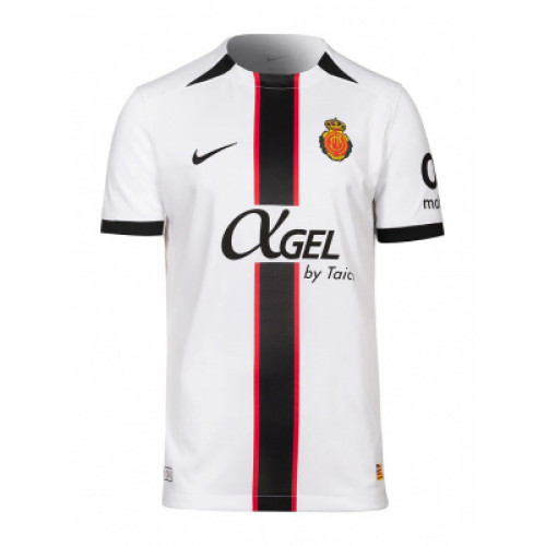 Гостевая форма «Мальорки» сезона 2025/26 от Nike выполнена в элегантном белом цвете с вертикальной чёрной полосой, обрамлённой тонкими красными линиями — отсылка к клубным цветам и домашней форме. На груди размещён логотип спонсора αGEL by Taica и герб клуба с короной. Материал с технологией Dri-FIT обеспечивает идеальную вентиляцию, быстрое высыхание и комфорт во время движения. Лаконичный и современный дизайн подчеркивает фирменный стиль команды.